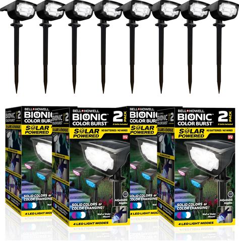 Bell + Howell Bionic Color Burst Solar Powered Waterproof Pathway Lights- 8 Pack - Black