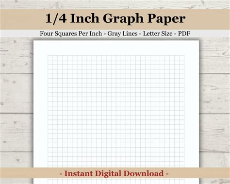 Printable Graph Template Paper, Printable Graph Paper Quarter Inch (.25 Inch), Four Squares Per Inch, 1/4 Inch Squares, Drawing, School Math