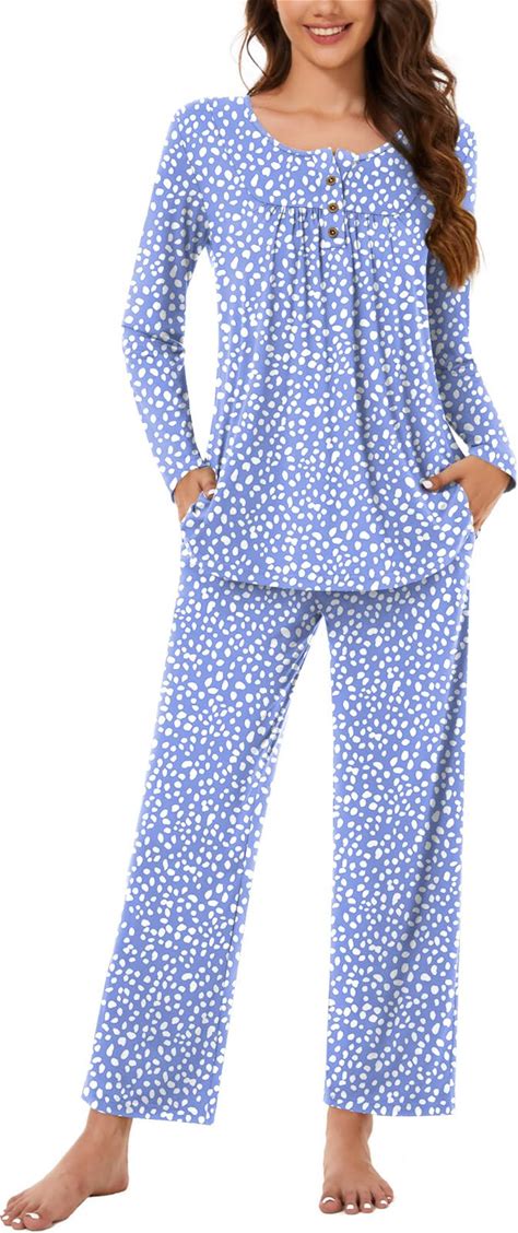 ZMJ Womens Pajamas Sets 2 Piece Long Sleeve And Pant Pj Sets Button Up Sleepwear