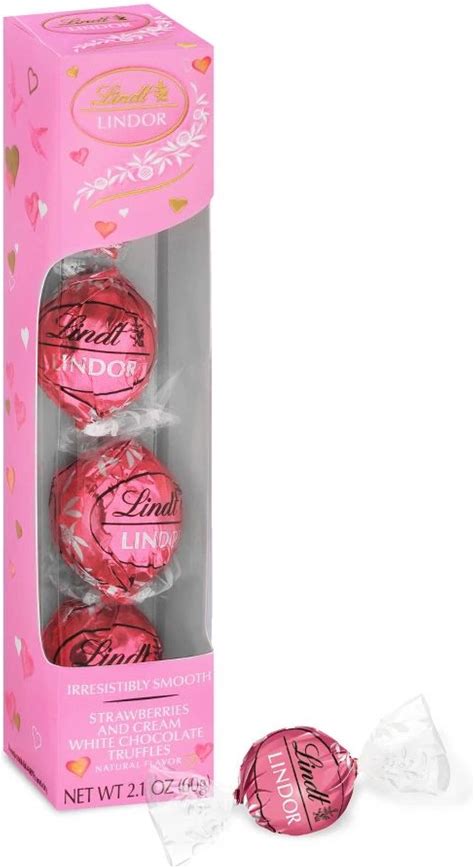 LINDOR, Lindt Valentine's Strawberries And Cream Chocolate Candy Gift Box - 2.1Oz