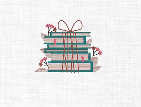 Bundle Of Books Embroidery Design, Reading Books Embroidery File, Flowers Books Embroidery Design, Stacked Books Embroidery Design, 5 Sizes