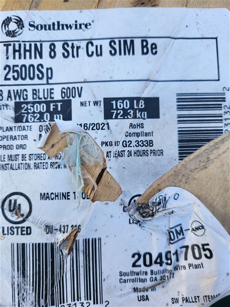 Southwire 8 AWG Stranded Copper SIM Building Wire Blue 600V 2500 ft