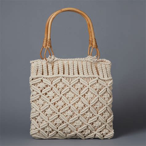 Macrame Purse, Handmade Bag, Purse, Bohemian Style, Handbag, Wooden Handle, Natural...