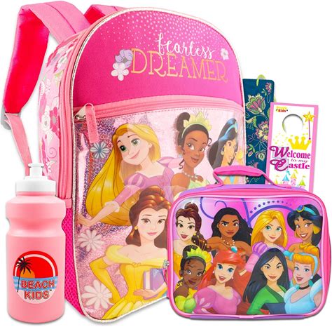 Disney Princess Backpack Lunchbox For Girls Set - Bundle Of 16" Disney Princess Backpack, Disney Lunchbag More | Disney Princess School Supplies