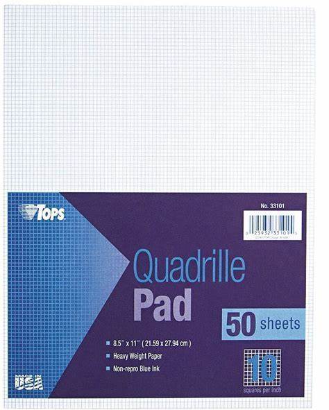TOPS Quad Ruling Cross Section Pad - Letter, 50 Sheets, Glue, Both Side Ruling Surface, 20 Lb Basis Weight, Letter, 8 1/2" X 11" Sheet Size, 0.22" Height X 11" Width X 8.5" Length, White Paper - TOP35081