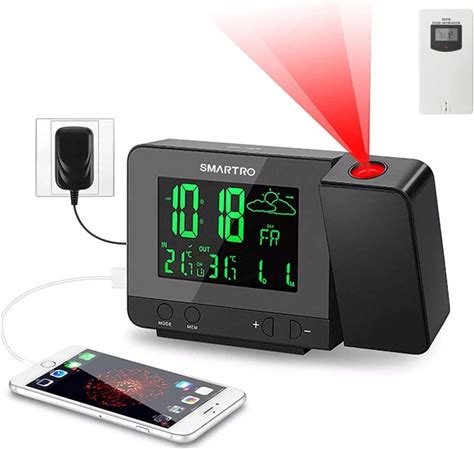 Smartro Sc31b Digital Projection Alarm Clock With Indoor Outdoor Thermometer, Black