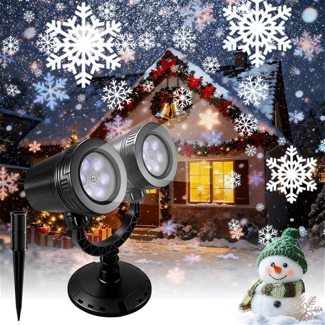 Tiffhome Winter Snowflake Projector Lights, Double-Head Holiday Light With 4 Snow Patterns, Light Decorations Outdoor Indoor, Waterproof Snowfall Led