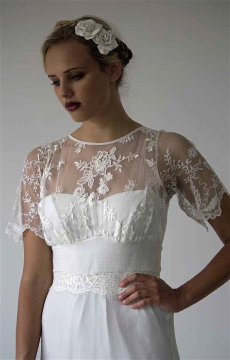 1930S Art Deco Lace Wedding Dress: Antique Edwardian Flutter Sleeve