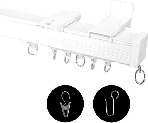 Curtain Track, Ceiling Curtain Track With Roller Hooks, Ceiling Mount Rail Set For Room Divider, 9ft - 12ft (White)