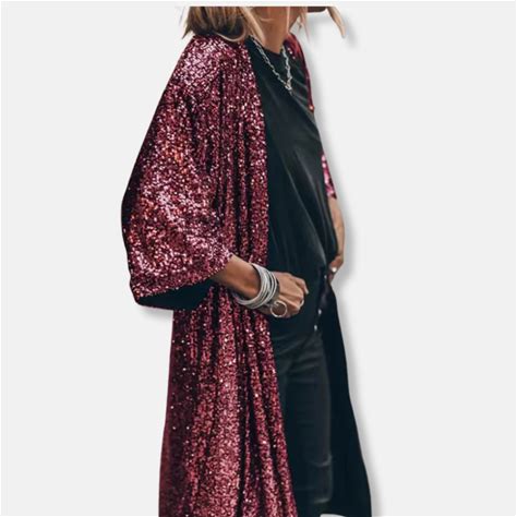 Women's Glitter Sequin Cardigan Long Sleeve Sparkle Duster Evening Party Cover Up Open Front Coat