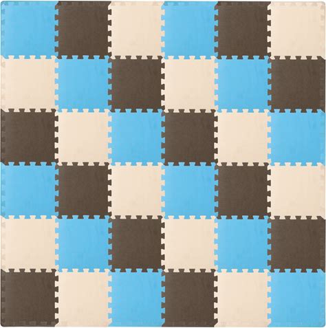 Prosourcefit Kids Solid Floor Play Mat 3/8-In - 36 SQ FT - Blue/Brown/Beige