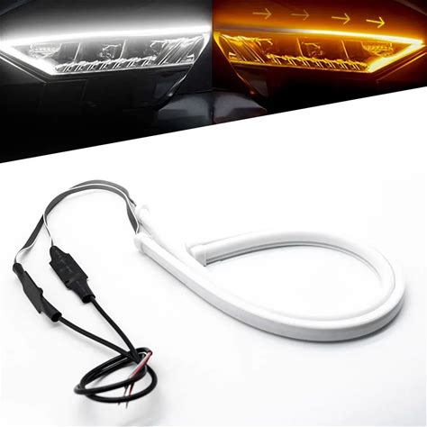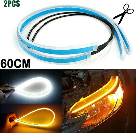 Led Car Daytime Running Light Strip 2Pcs Waterproof Sequential Flexible Yellow Arrow Flowturn Signal