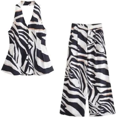Zebra Pattern Blend Vest Zebra Pattern Leg Casual Pants Two-Piece Set