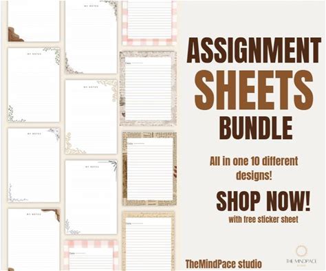 Assignment, Study,Notes Sheets Printable (10 Pages) - Editable Notes | A4 & US Letter