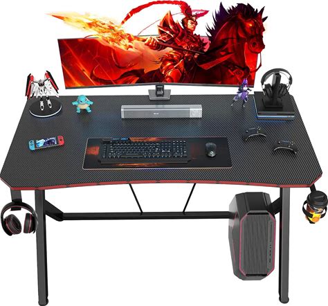 Ecoprsio Gaming Desk 55 Inch Gaming Computer Desk With Carbon Fiber Desktop Black Gamer Table With Cup Holder And Headphone Hook Large Home Office Desk Game Tables For Game Room, Workstation