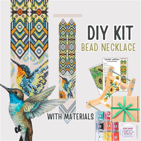 DIY Beadweaving Hummingbird Necklace Craft Kit, Seed Bead Bird Colibri Loom Easy Needlework Tutorial, Do It Yourself Animal Colibri Kit