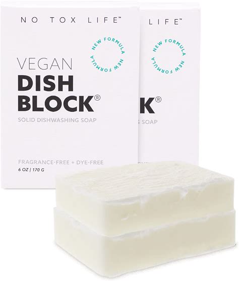 NO TOX LIFE Vegan Dish Block, 6 Oz - A Solid Dish Soap For Effective Cleaning Of Dishes, Pots And Pans - Ultra-Concentrated Biodegradable Formula -