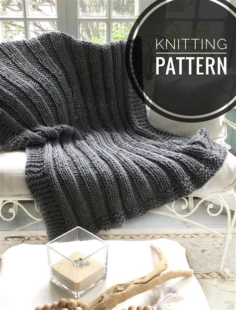 Fisherman's Rib Knit Throw Blanket Pattern: Bulky Yarn, 6 Sizes (PDF Pattern)