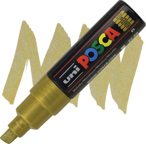 Uni Posca Paint Marker - Gold, Broad Chisel Tip, 8 mm