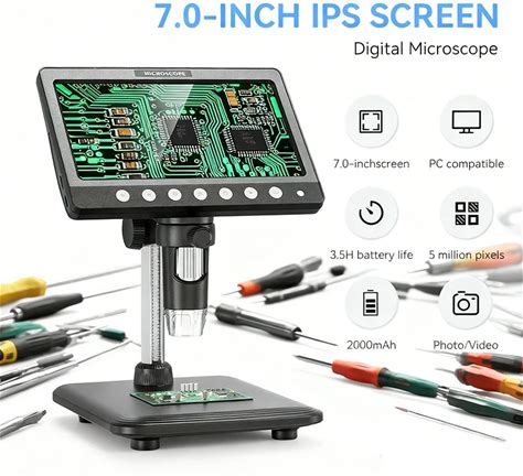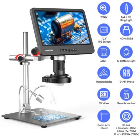 TOMLOV DM9 Pro 7" Digital Microscope 1200X With IPS Screen, 1080P 16MP Coin Microscope Magnifier For
