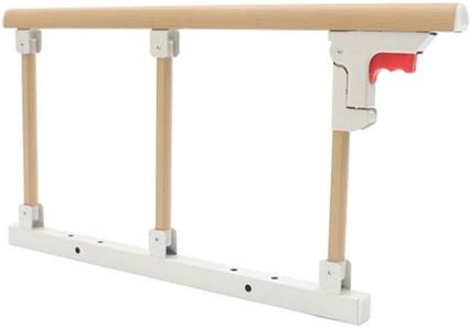 68 cm/26.77in Folding Bed Rails Medical Hospital Side Bedside Aluminium Alloy For Seniors Elderly Adults For Embedded Bed Type, Old-Fashioned Wooden B