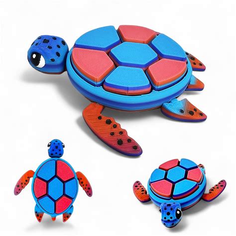 Articulating Turtle Fidget Animal Figurines - Unique 3D Printed Collectibles, Poseable Desk Animals For Adults, Stress Relief And Display Gift (