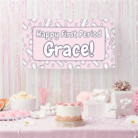 Happy First Period Name Pink Cute Tampon Pad Banner