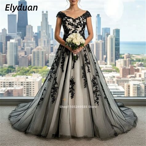 Gothic Wedding Dress Black A-Line Bridal Gowns Lace Appliques Sleeveless Tulle Vintage Bride Dresses