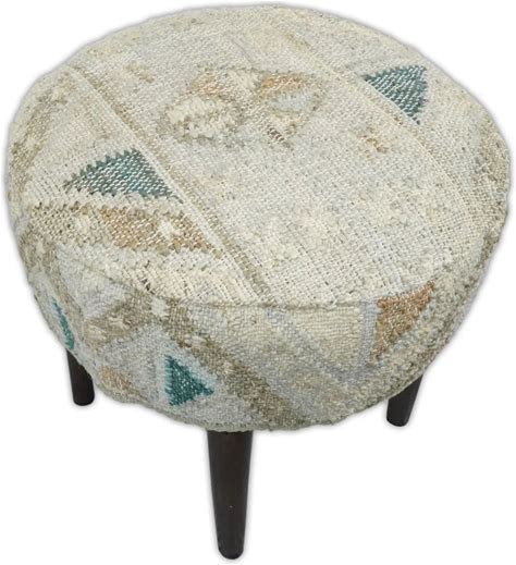 Handmade Boho Natural Brown And Ivory Wooden Stool(18"X18")