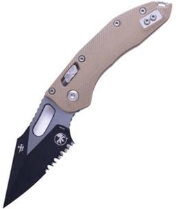 Microtech Stitch Ram Lok S/E Black Full Serrate Fluted G-10 3.71in Folding Knife Black 169RL-3FLGTBK