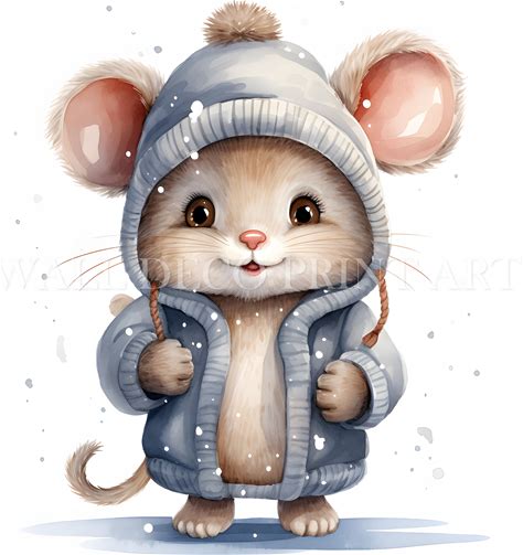 Clipart / Digistamp Emil With Mouse Hand-Drawn In Watercolor Style