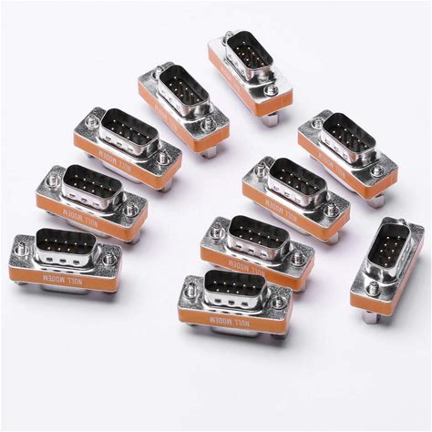 Arnorin DB9 Null Modem Adapter Male To Female Slimline Data Transfer Serial Port Adapter 10 Pack