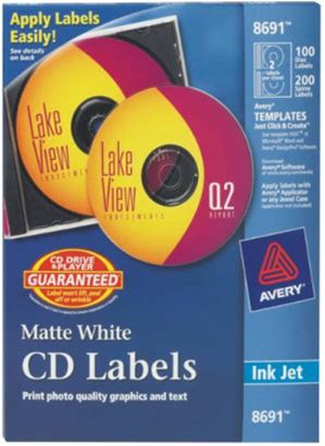 Avery Printable CD Labels, Matte White, Permanent Adhesive, Inkjet Printer Compatible, 100 Disc & 200 Spine Labels, Ideal For Cds, Dvds, PC Discs,