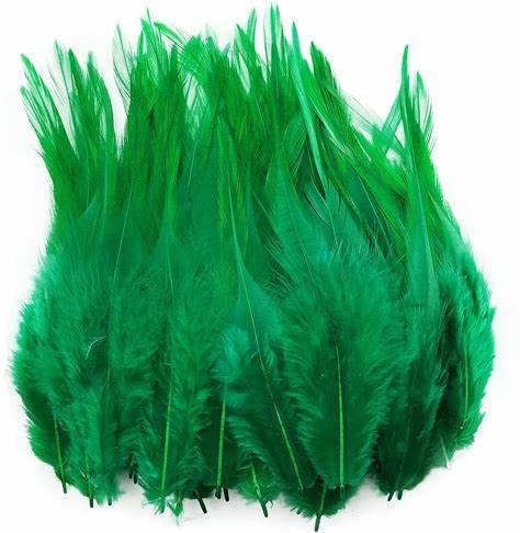 Happy Feather 100PCS Saddle Hackle Rooster Feather For Crafts, 5-7 Inch Natural Pheasant Neck Feathers DIY Pendant Earrings Dream Catcher-Green1