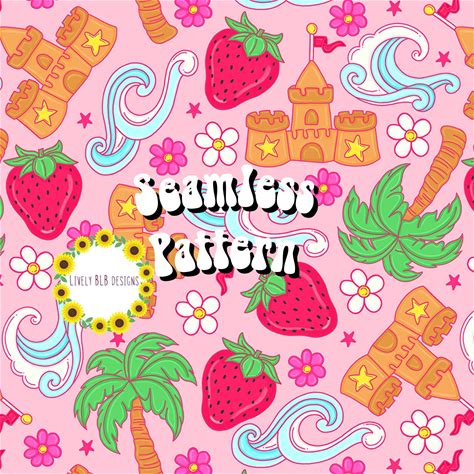 Summer Strawberry Beach Repeating Seamless Pattern File Design