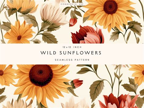 Sunflowers Seamless Pattern | Repeat Pattern | Repeating File | Yellow Muted Colors | Digital Paper JPEG | Commercial Use | Digital Download