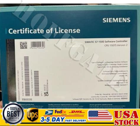 Siemens Simatic S7-1500 6ES7672-7AC01-0YA0 Software Controller Certificate Lic