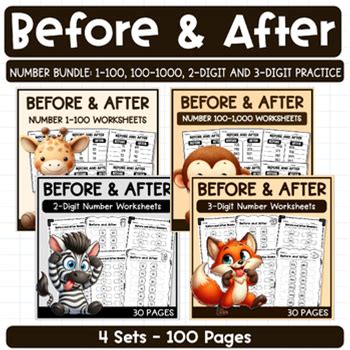 Before & After Number Sequence Practice Worksheets | 2-Digit & 3-Digit Bundle.