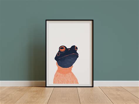 Retro Frog Artwork, Frog Drawing Illustration,Weird Vintage Amphibian Linocut,Midcentury Kitchen Bathroom Wall Art, Animal Lover Frog Gift