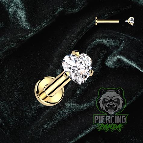 16G Titanium Internal Thread White Heart CZ Gem ASTM F136 Gold PVD Labret Medusa Barbell Piercing Cartilage Helix Tragus Conch Stud Jewelry