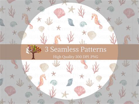 Coastal Seamless Transparent Pattern 300 DPI PNG Instant Download For Digital Papers Vinyl Fabric Surface Design