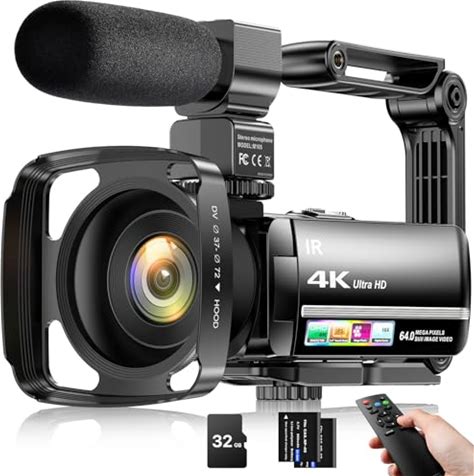 4K Video Camera Camcorder 64MP Vlogging Camera For Youtube 18X Digital Zoom 3.0" IPS Screen IR Night Vision With External Stereo Microphone,Handheld Stabilizer,Remote,Lens Hood,32G Card 2 Batteries