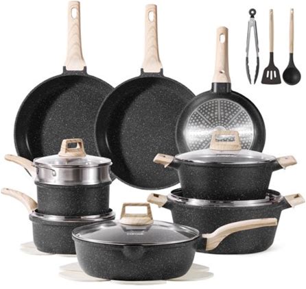 Carote Nonstick Cookware Sets, 24 Pcs Granite Non Stick Pots And Pans Set, Induction Cookware, White