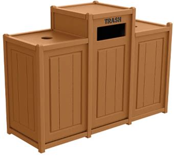 Two-Tone Panel Design Recycling Containers/ Three 33-Gal., Two Top, One Side-Load/ Cedar/Black Frame