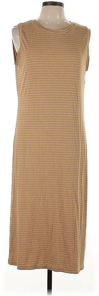 Mod Ref Casual Midi Dress Crew Neck Sleeveless: Tan Dresses - Women's Size Large