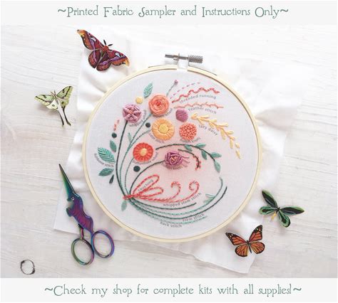 Stitch Sampler Full Kit Beginner Hand Embroidery Design, Printed Hand Embroidery Pattern, DIY Sampler