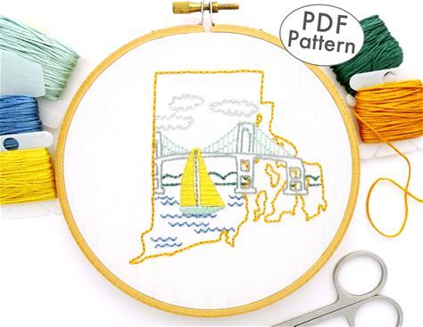 Newport Bridge Hand Embroidery Pattern: Rhode Island Sailboat Design (PDF Pattern)