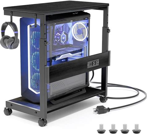 Computer Tower Stand with Power Outlet, 6 Level Height Ajustable P
