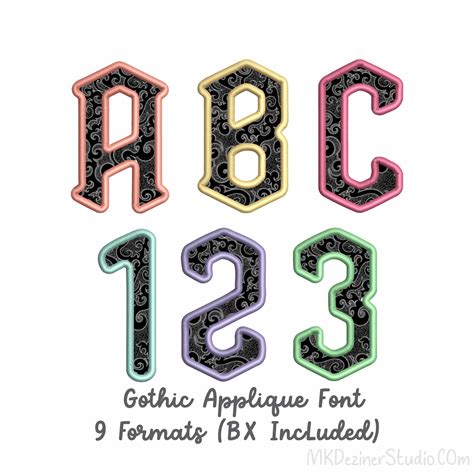 Monogram Applique Gothic Font Machine Embroidery Applique Designs Monogram Alphabet Letters, Digital Files Format BX PES DST, 8 Sizes