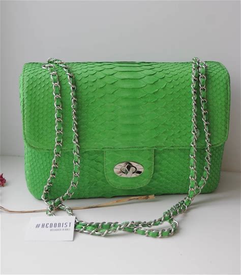 Genuine Python Skin Maxi Crossbody Bag Green Colour Big, Summer Big Chain Crossbody, Elegant Classy Crossbody Bag Genuine Leather Summer